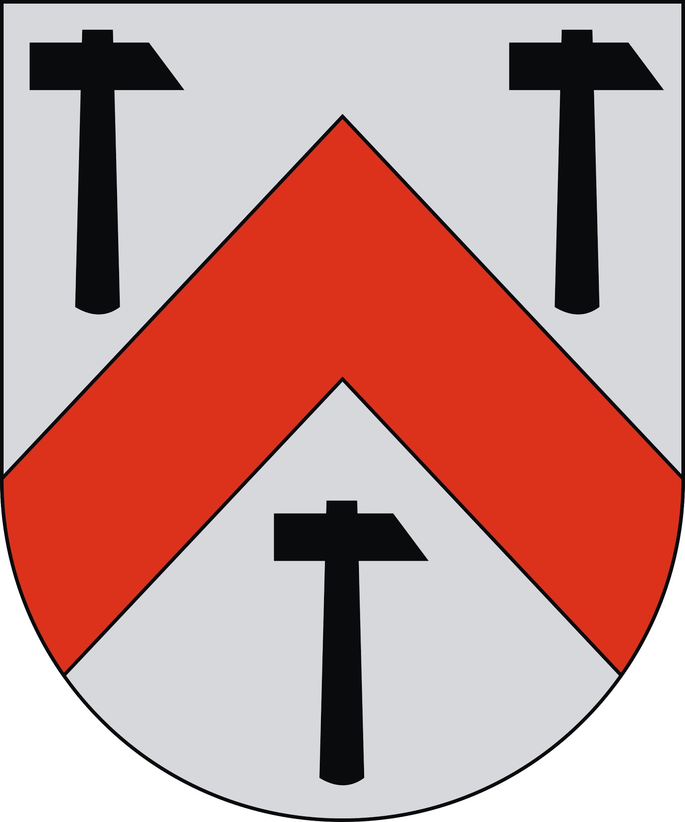 De oro, una banda de sable acompañada en en lo alto de dos lobos de sable y en lo bajo de dos calderas de sable.